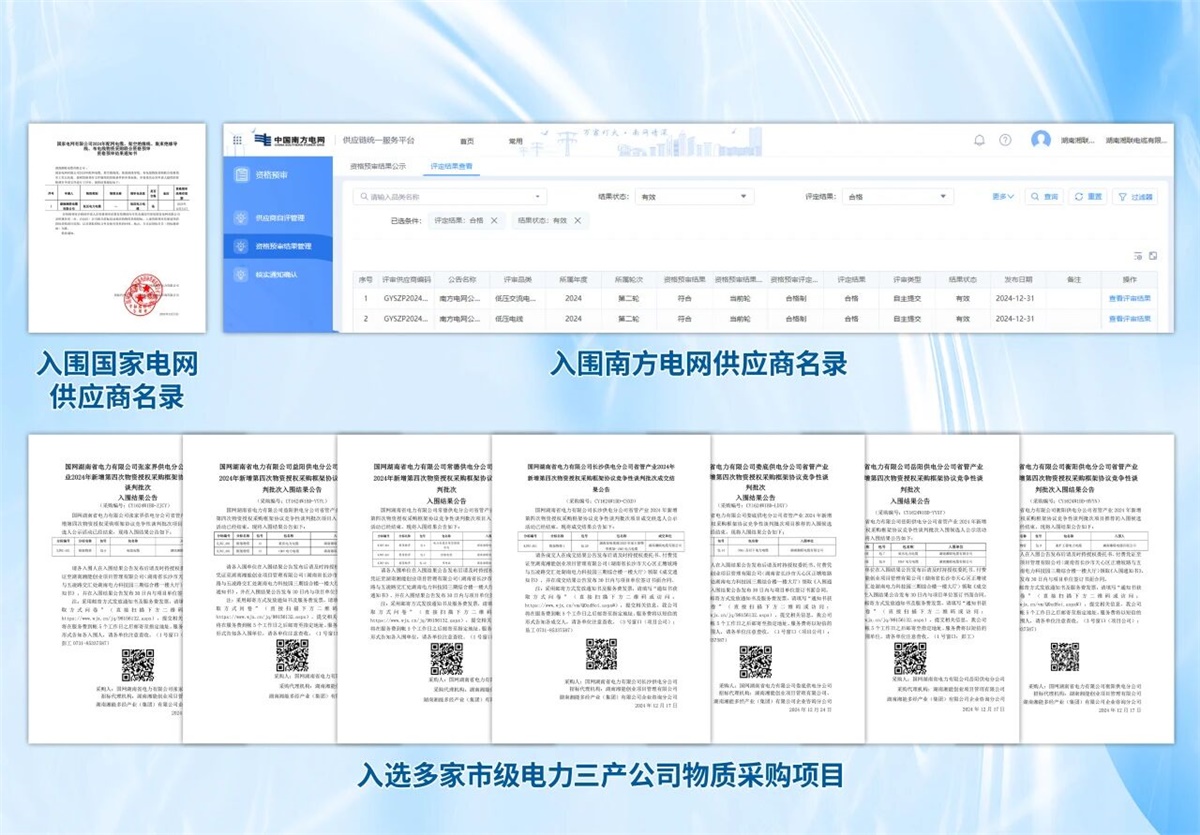 2025年,湘聯電纜在電力市場的沃土上持續向下扎根,向上生長。不僅穩居國家電網、南方電網供應商名錄,同時,入選多家市級電力三產公司的物資采購項目,將服務的根系拓展至更廣闊的生態圈。以深耕之姿,持續為電力系統的安全、穩定與高效運行,貢獻堅實的力量。