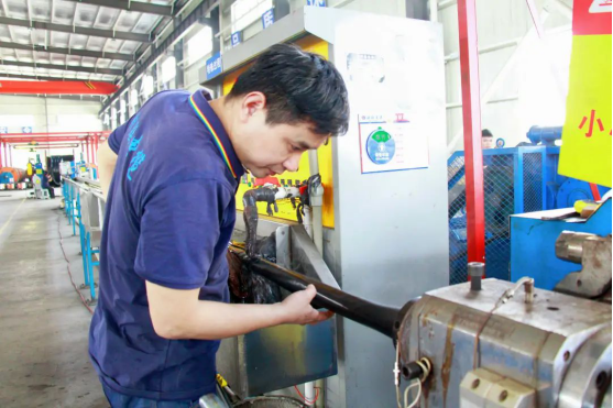 與其他組裝式的產品不同,后期檢查出現質量問題,可以拆開重裝或更換零件,電纜的生產制造任何一個部件或工藝工序沒有達標,后期是無法挽回和彌補的。因此,電纜生產線上的每一個操作者都是關鍵人物。作為機組組長的劉學文,深知自己肩上的重任,一旦進入車間,他便絲毫不敢懈怠,總是在生產線之間來回走動,反復查看機器設備的運轉情況、第一時間查看電纜成品質量,快速發現問題,解決問題,避免不良品流入下一道工序,不僅保障了電纜質量,而且有效提高了電纜的生產效率。