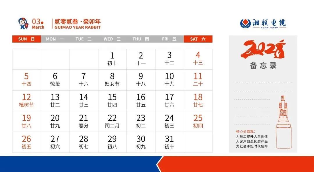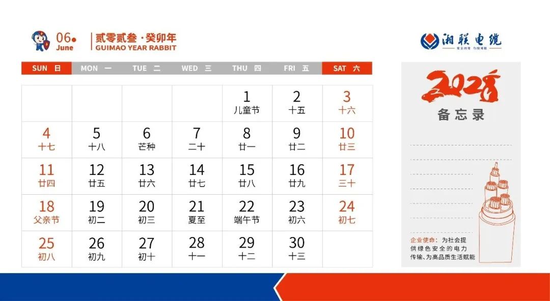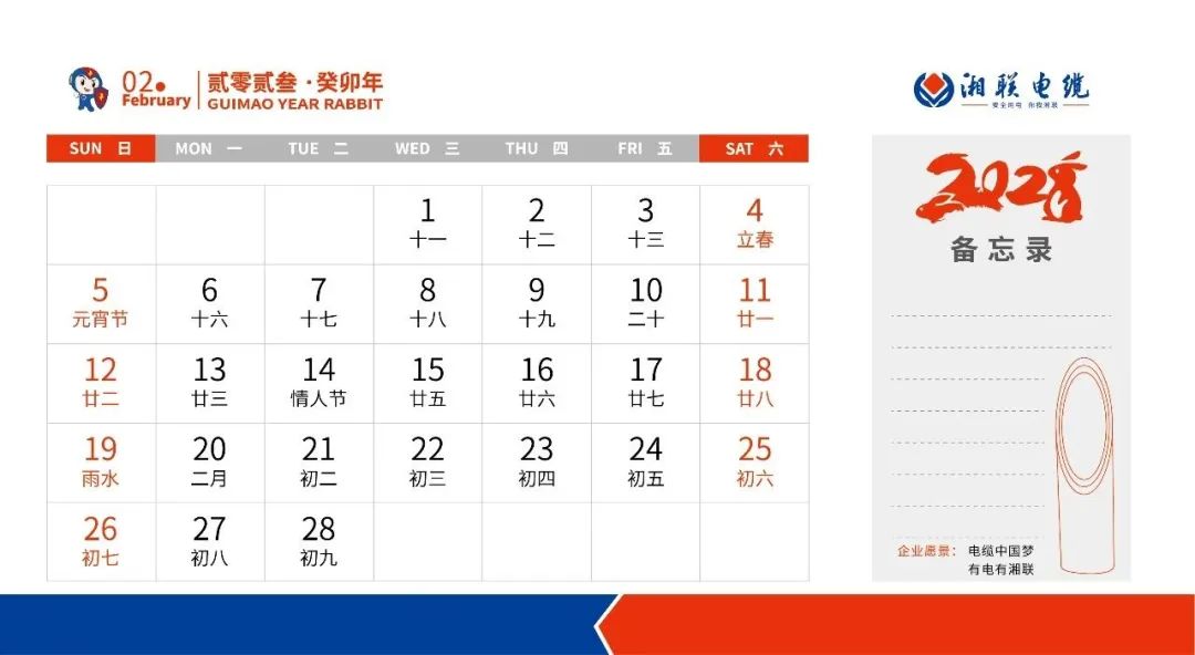 敬呈2023年湘聯電纜月歷
