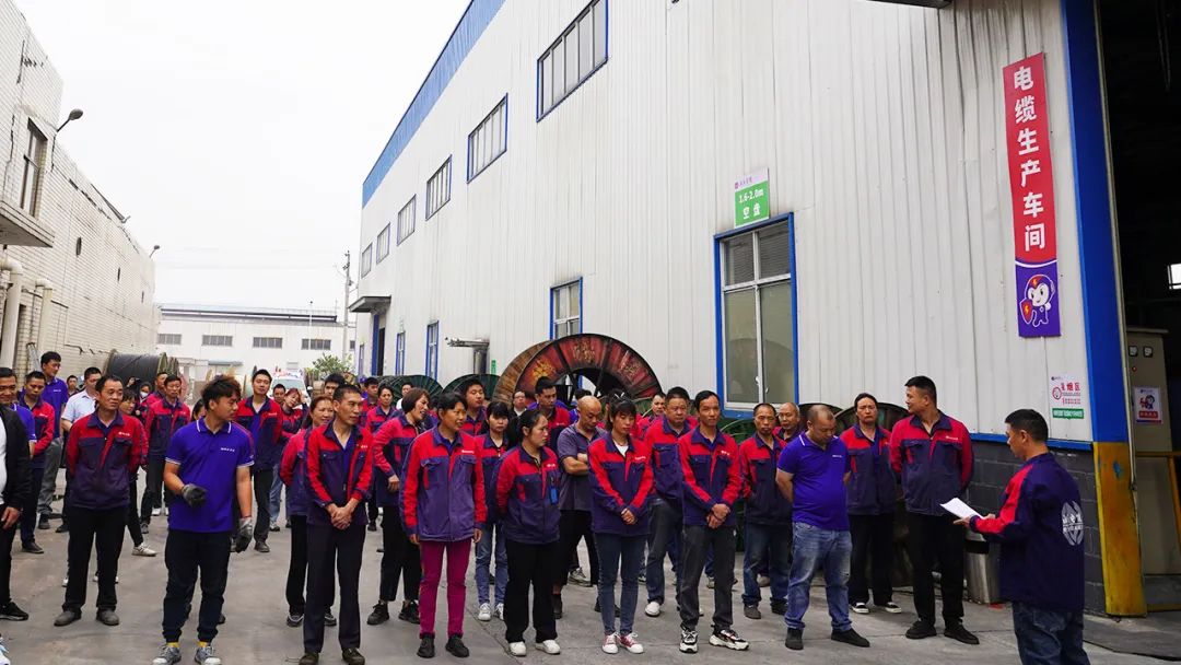 清晨8點15分,急促的口哨聲和警報聲在湘聯電纜廠區各個區域響起,在各區域應急隊長的帶領下,全體員工迅速反應,彎腰、捂鼻按照逃生標準姿勢迅速撤退,安全撤離到廠區空地并完成人數清點,順利完成30秒火災疏散逃生演習。